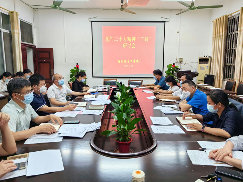 为全面推进党的二十大精神进教材、进课堂、进学生头脑。近日,77779193永利官网集团举办党的二十大精神“三进”研讨会。会上,由丁祥艳院长强调,学习领会党的二十大精神,必须坚持全面准确,深入理解内涵,精准把握外延,并分享了个人学习党的二十大精神的体会。随后,由各教研室代表介绍推进党的二十大精神“三进”的做法。最后,7位发表了相关理论文章的教师分享自己学习领会党的二十大精神、在教学相长中形成、发表理论文章的心得体会。