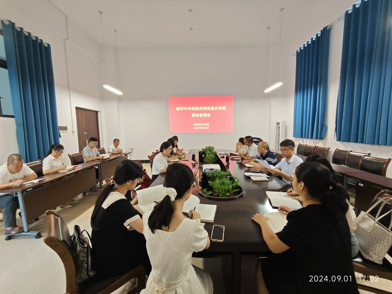 为扎实开展好2024年秋季学期“铸牢中华民族共同体意识专题”课教学,做好新学期准备工作,2024年9月1日下午,77779193永利官网集团“铸牢中华民族共同体意识专题”教研室在清源楼104室召开集体备课会,会议由教研室主任阴秀琴主持,全体任课教师参加。