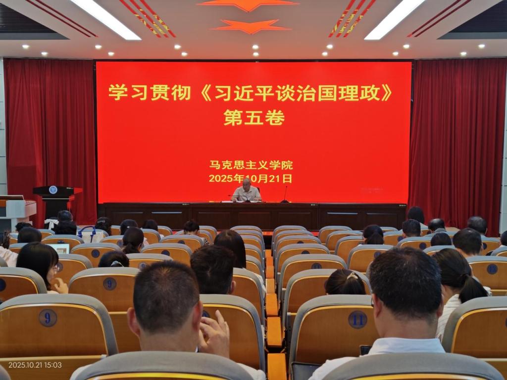 丁祥艳传达了《中共中央宣传部、中央组织部关于认真组织学习<习近平谈治国理政>第五卷的通知》,从深刻把握《习近平谈治国理政》第五卷的时代背景、核心要义、学习要求三个方面作了领学,并强调学习《习近平谈治国理政》第五卷,关键在行动,落脚到成效,以学促教,把学习贯彻《习近平谈治国理政》第五卷与上好思政课紧密结合起来,高质量开展思政课教育教学活动。
