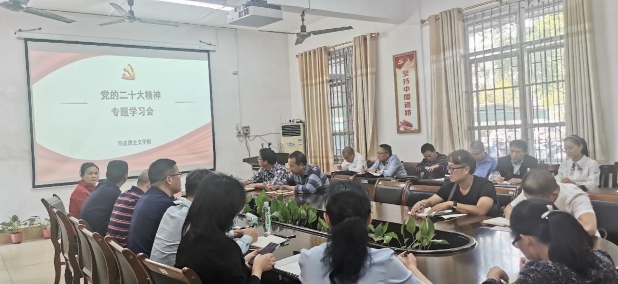 会后,各教研室组织教师进行党的二十大精神进课堂专题备课会,落实把党的二十大精神融入思政课的教学任务。