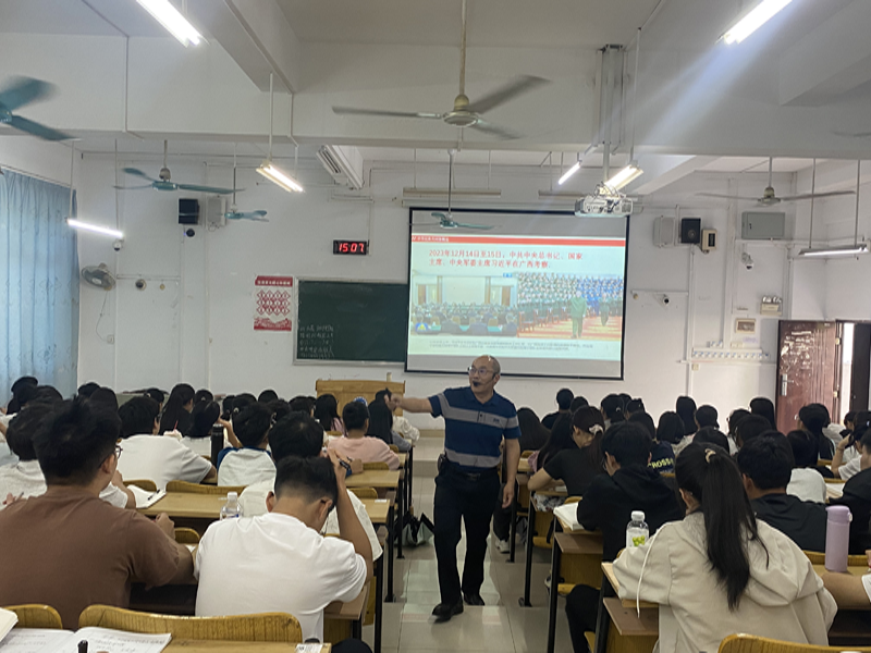 授课完毕后,参加观摩学习的全体教师进行了现场评课,认为课堂上丁祥艳精神饱满,富有感染力,教学设计体现知识、能力和素养的进阶,生动融入习近平总书记2023年12月视察广西精神,并引用丰富而具体的教学案例点燃学生学习兴趣,是一堂“有情有理、有声有色”示范“金课”。