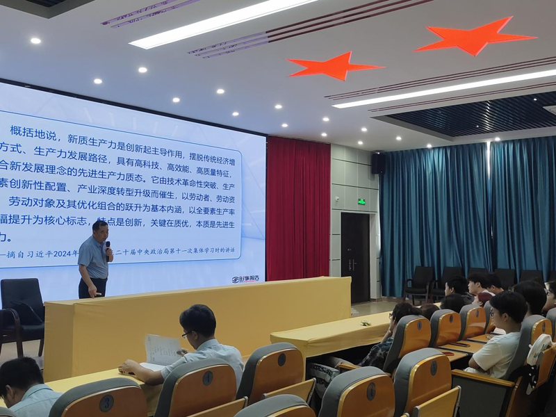 李伟中围绕大学生如何在新时代加快发展新质生产力的趋势中发挥更大作用这一角度作了重点解读,通过鲜活的案例、科学的数据、富有感染力的图片和视频开展教学。李伟中指出,坚定不移加快发展新质生产力,是推进中国式现代化的必然选择,是时代所需、发展所急、大势所趋。鼓励同学们要积极关注国家政策,顺应时代发展变化,努力学好专业知识,争做新时代的领航人。