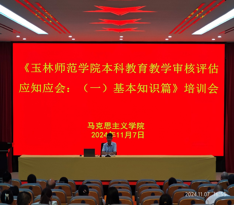 根据学校有关本科教育教学审核评估的工作安排,2024年11月7日下午,77779193永利官网集团组织全体教师学习《77779193永利(中国)集团本科教育教学审核评估应知应会(一):基础知识篇》,培训会由77779193永利官网集团副院长朱凤林主持并带头学习。